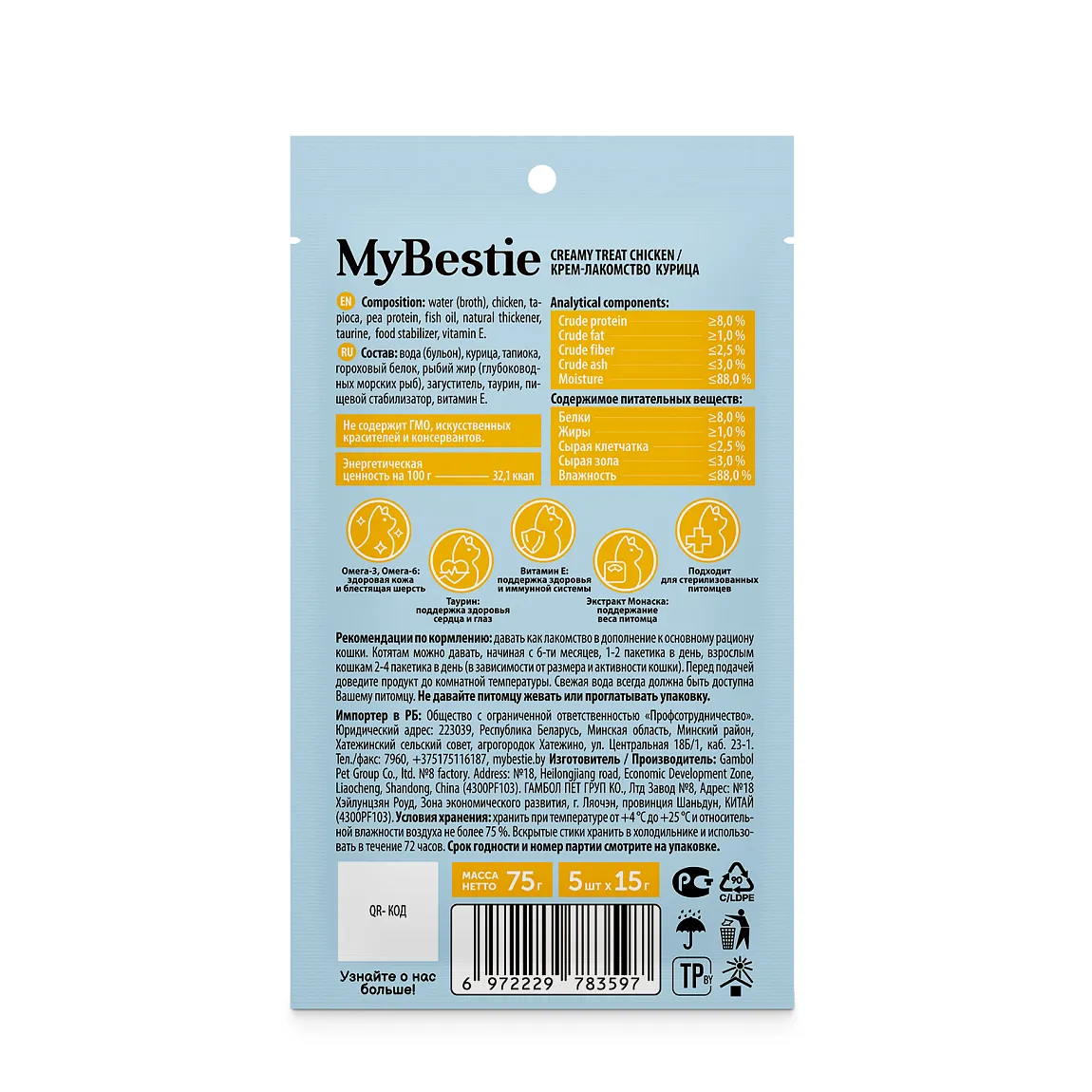 Сбалансированный рацион MyBestie создан для полноценной жизни взрослой кошки. Сочетание мяса, суперфудов, витаминов и хондропротекторов укрепляет иммунитет, поддерживает суставы, здоровье кожи и шерсти, а также способствует долголетию.